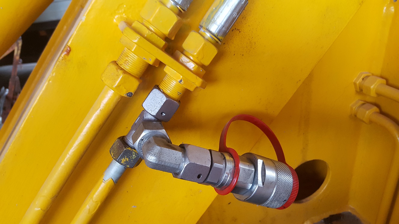 Anschlüsse für Hydraulische Seilwinde am Kramer 516 umgebaut