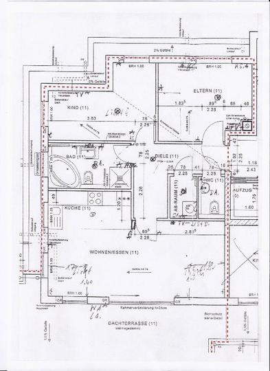 Bei einer Penthouse Wohnung werden 50 % von der Terrasse zur Wohnfläche dazugerechnet(DIN277)