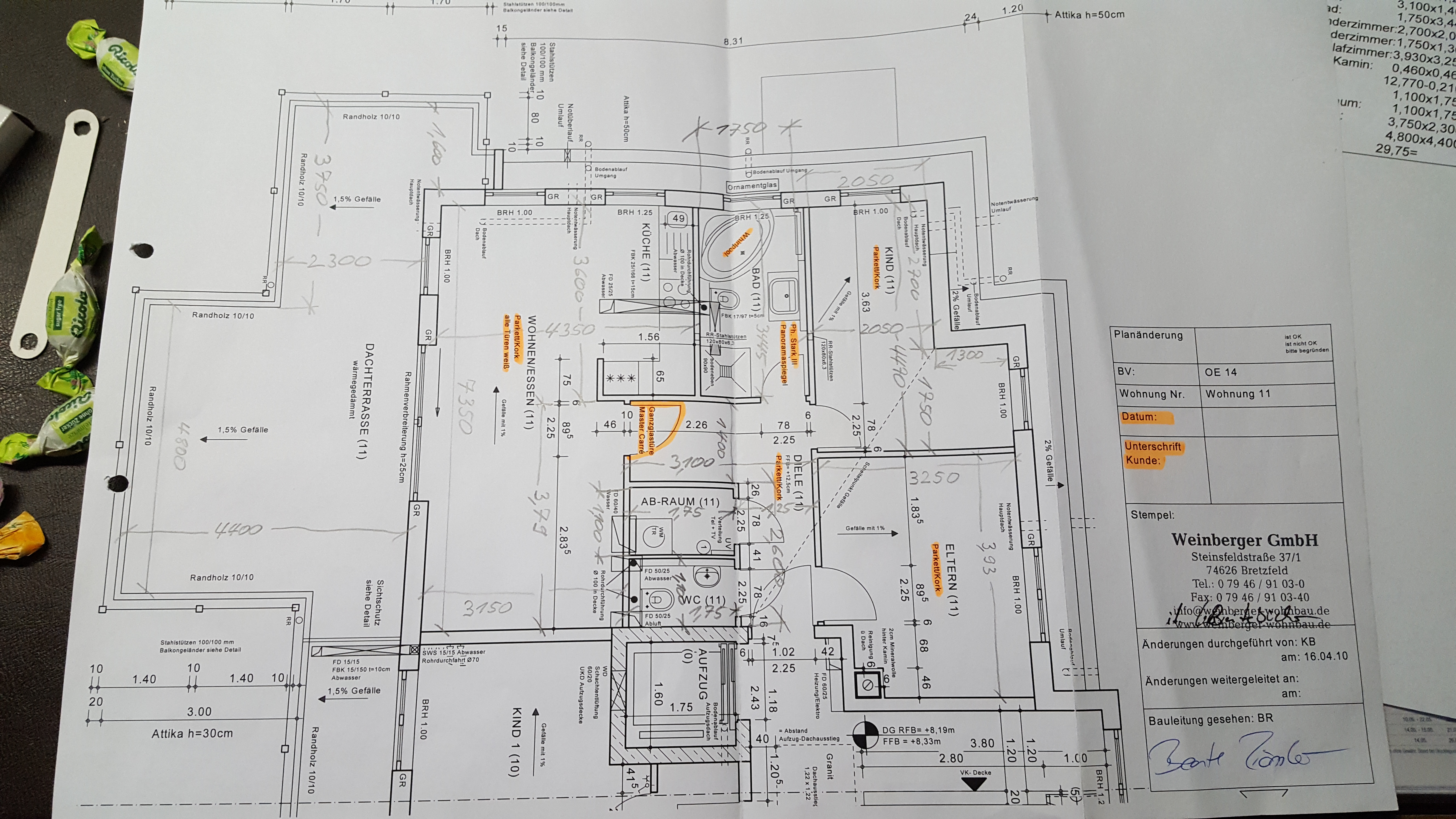 Bei einer Penthouse Wohnung werden 50 % von der Terrasse zur Wohnfläche dazugerechnet(DIN277)